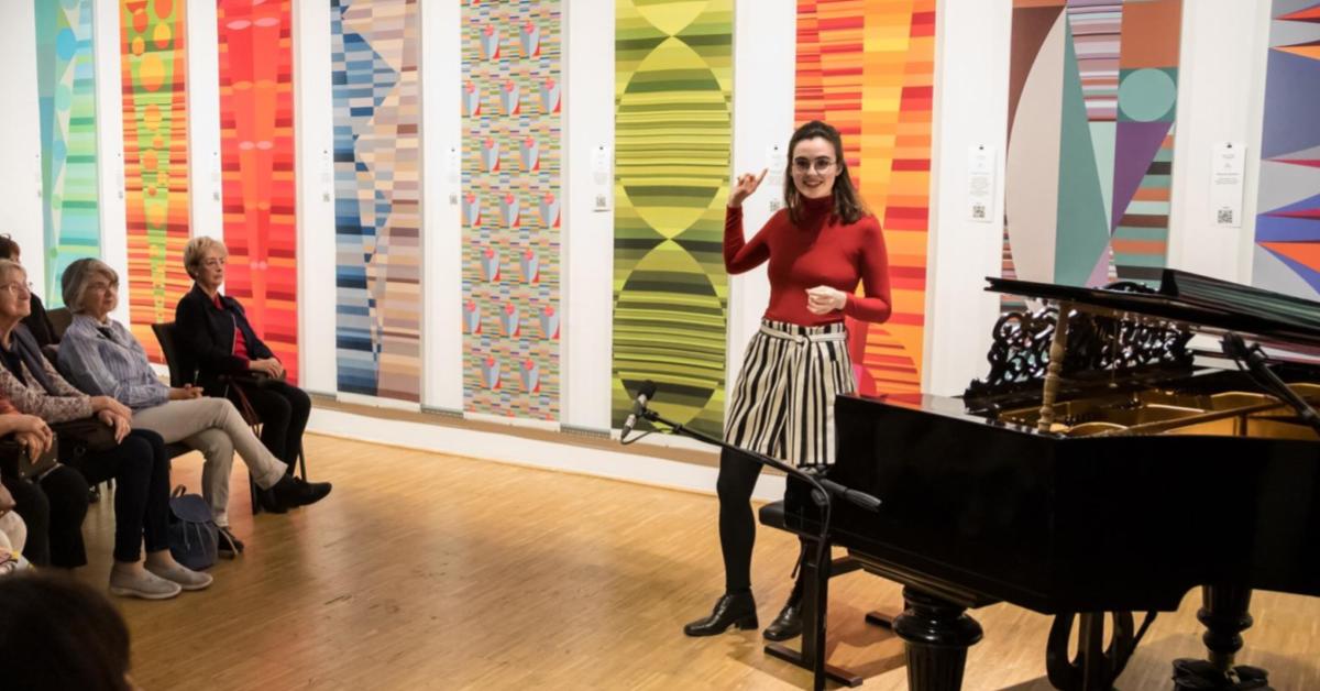 A TÁRLATVEZETÉS valódi összművészeti élményt kínál: Radnóti Róza fiatal zongoraművész zongorajátékkal kísért tárlatvezetést tart felfejtve a zenemű és a textilek összefüggéseit, amelyet Szigeti Szilvia a textilek alkotása során megfogalmazott tervezői attitűdök bemutatásával egészít ki. A program részeként a látogatók rövid részletet láthatnak a Kerényi Mihály rendezésében és Radnóti Róza zongoraművész közreműködésével készülő, 2026 június elején bemutatásra kerülő Bartók – 14 bagatell című zenefilmből is.